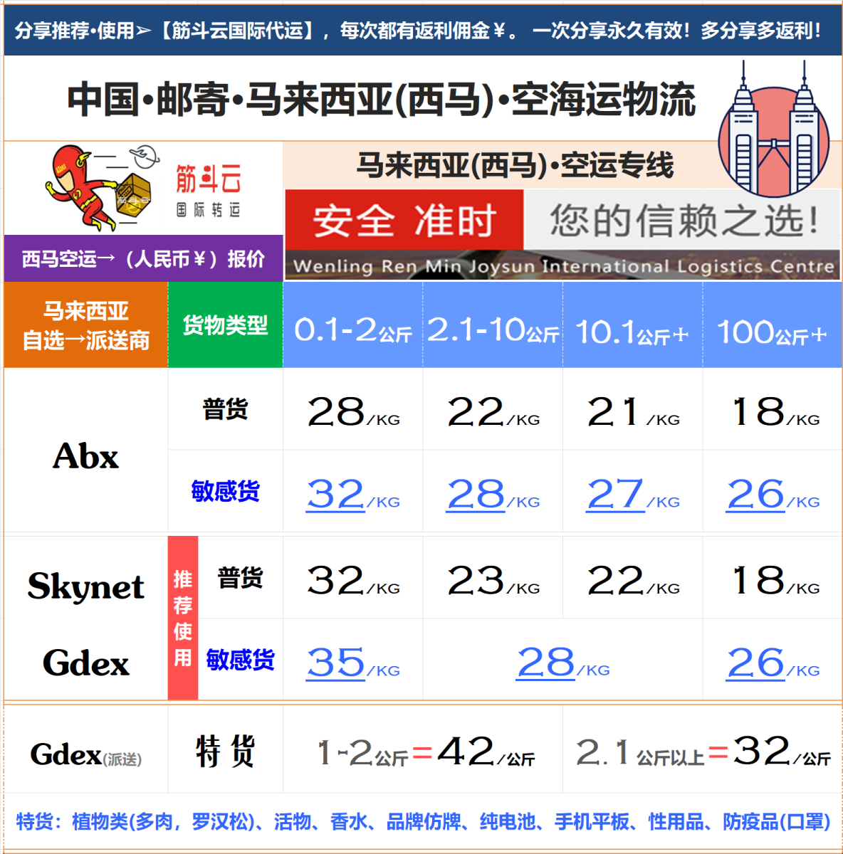 AIoks筋斗云国际代运-马来西亚丨吉隆坡集运-Malaysia-西马空运、海运小包、立方海运-资费